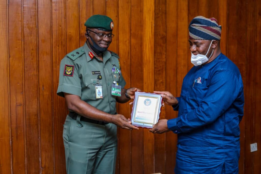 The Executive Chairman, Oyo State Road Transport Management Authority (OYRTMA), Mogaji (Dr.) Akin Fagbemi paid a courtesy visit to the General Officer Commanding, 2 Division, Nigerian Army, Ibadan, Major General A.B. Omozoje.