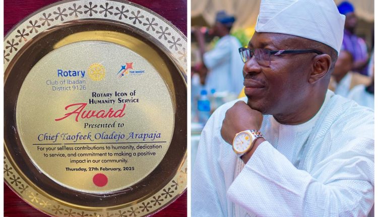 The Rotary club international has honoured the Deputy National Chairman (South) of the Peoples Democratic Party, Ambassador Taofeek Arapaja with Rotary “Icon of Humanity Service” Award.