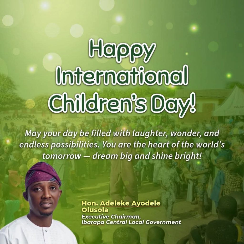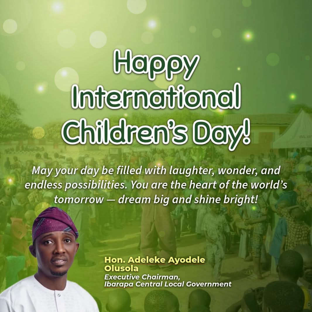 In celebration of the 2025 Children’s Day, the Executive Chairman of Ibarapa Central Local Government, Hon. Adeleke Ayodele Olusola has extended heartfelt greetings to children across the local government and reaffirmed his administration’s commitment to promoting child welfare, education and protection.