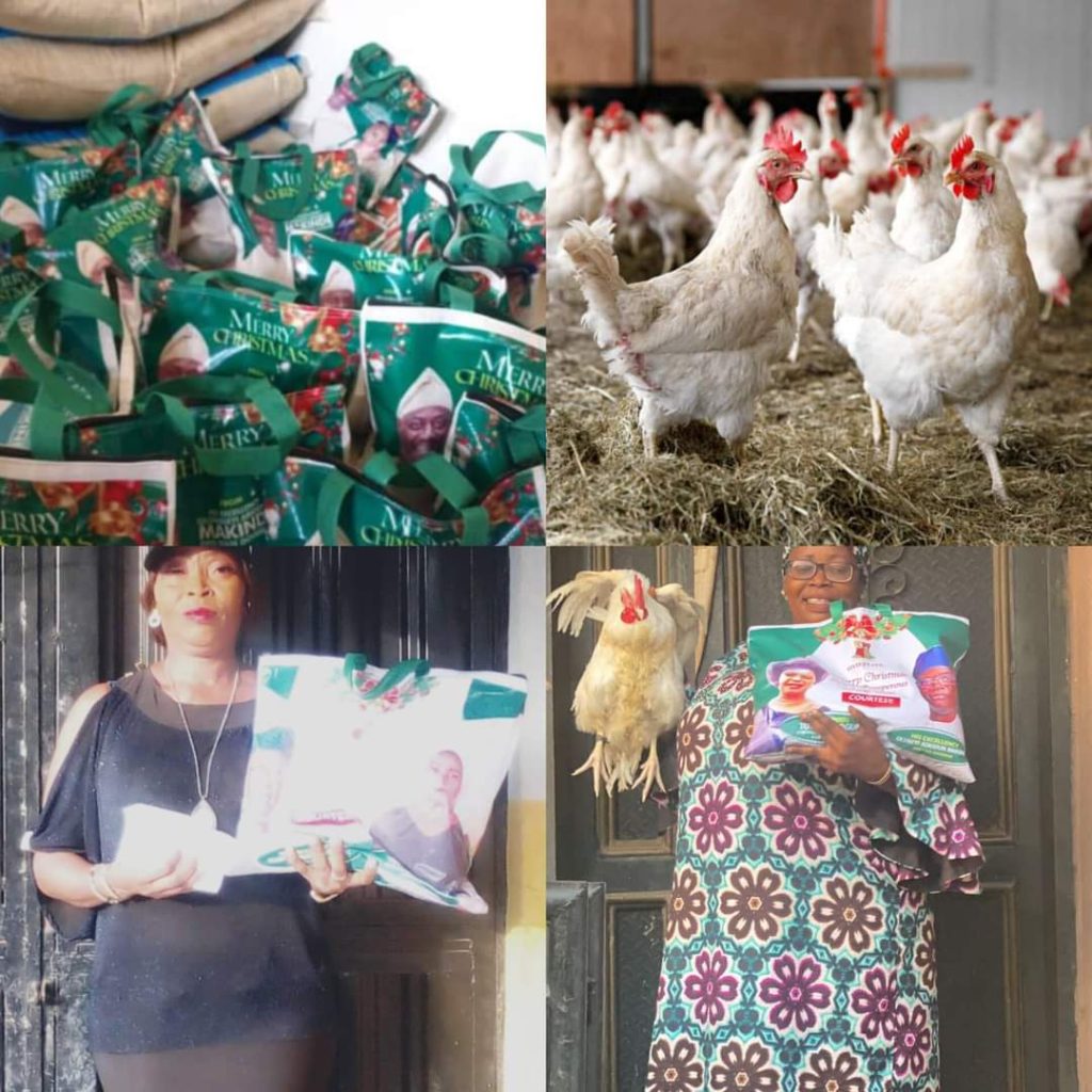 The Oyo State Commissioner for Women Affairs and Social Inclusion, Toyin Balogun has distributed thousands of bags of rice, chickens and cash gifts to residents in all the 33 local government areas of the state.