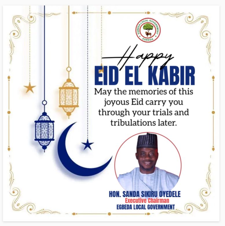 The Executive Chairman of Egbeda Local Government, Hon. Sikiru Sanda, has extended warm greetings and heartfelt felicitations to Muslim faithful across Oyo State, particularly the people of Egbeda LGA, as they join millions worldwide to celebrate this year’s Eid-ul-Kabir.