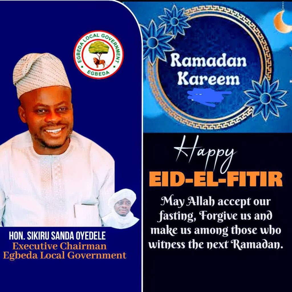 In his Sallah statement ” I urged Muslims to uphold the lessons of Ramadan by continuing in act of charity, peaceful coexistence and adhere to the teachings of the Holy Qur’an, emphasized the importance of prayers for peace in Egbeda local government, Oyo State and Nigeria as a whole”.