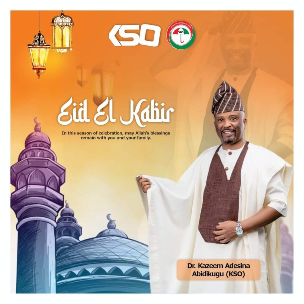 A Chieftain of the People’s Democratic Party, (PDP) in Oyo State, Dr Kazeem Adesina Abidikugu has felicitated all Muslim Ummah in the state on the occasion of this year’s Eid – el – Kabir.