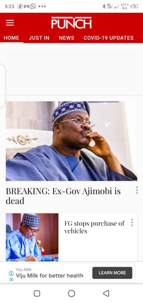 On Monday, a reliable source close to the ex-governor had told SaharaReporters that Ajimobi had been on life support machine after he slipped into a deep coma and may not make any recovery going by the observations of medical experts around him.