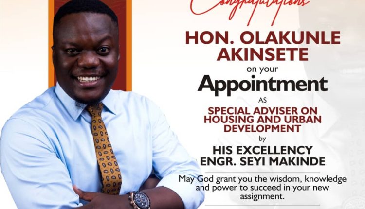 The statement equally appreciated Governor Seyi Makinde for counting a vibrant youth like Hon Olakunle Akinsete to serve in his administration.