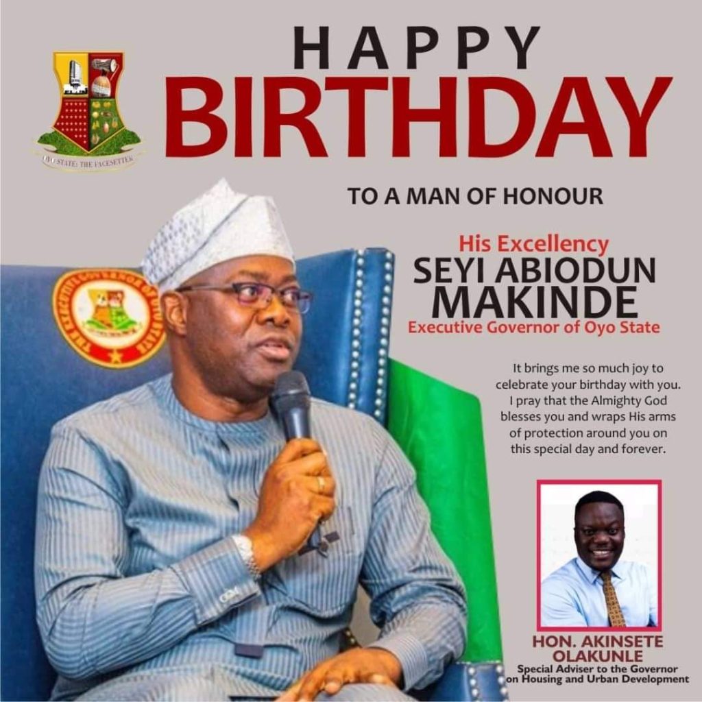 The Special Adviser to the Oyo State Governor on Housing and Urban Development, Hon Olakunle Akinsete has extolled the sterling leadership qualities of his principal and leader, Governor Seyi Makinde on the occasion of his 56th birthday celebration.