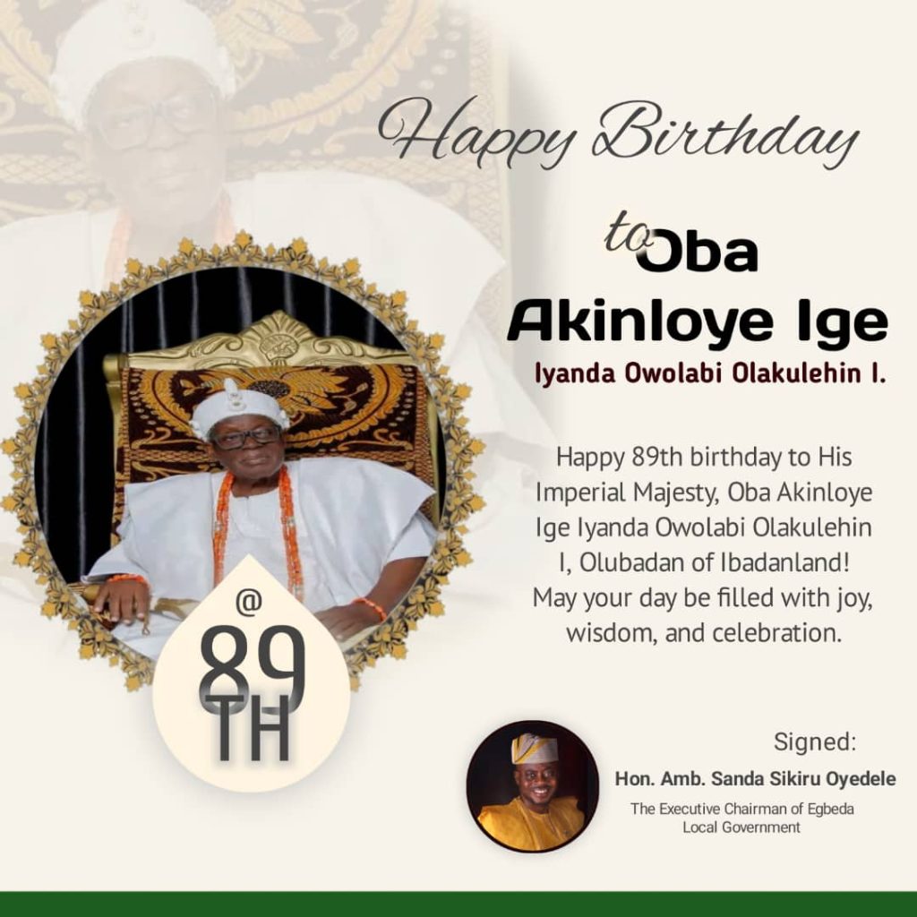 “Happy 89th birthday to our beloved Olubadan! May your day be filled with joy, love, and celebration.”