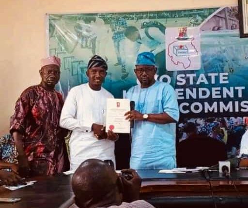 The Oyo State Independent Electoral Commission (OYSIEC) has officially issued the Certificate of Return to the Ibarapa central Local Government Area Chairman and Vice Chairman elected, Hon. Sola Adeleke and Hon. Rasheed babarinde, respectively.