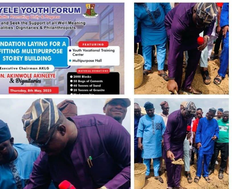 In a momentous event that underscores his commitment to a youth inclusive governance, the Executive Chairman of Akinyele Local Government, Hon Akinwole Akinleye, yesterday, 8th of May 2025, laid the foundation for the construction of the Akinyele Youth Forum Multipurpose Storey Building. This initiative is a testament to his dedication to fostering a youth-inclusive governance model, reminiscent of the exemplary leadership showcased by his Principal, The Oyo State Governor, Engr Seyi Makinde.