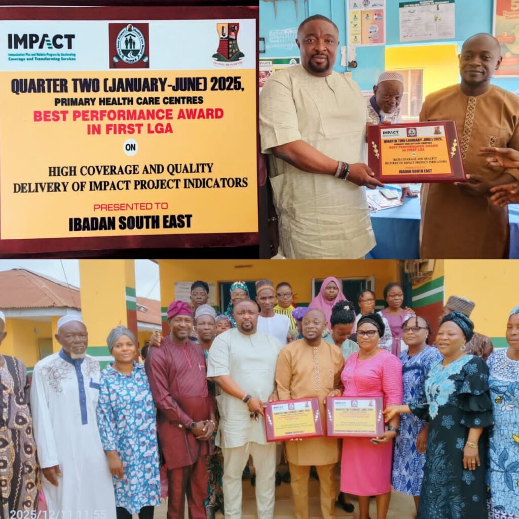 The Ibadan South East Local Government has been recognized and honoured with the prestigious Award of Best Performing Local Government in Primary Health Care Delivery by Immunization Plus and Malaria Progress by Accelerating Coverage and Transforming Services (IMPACT), in collaboration with the Oyo State Primary Health Care Board.