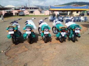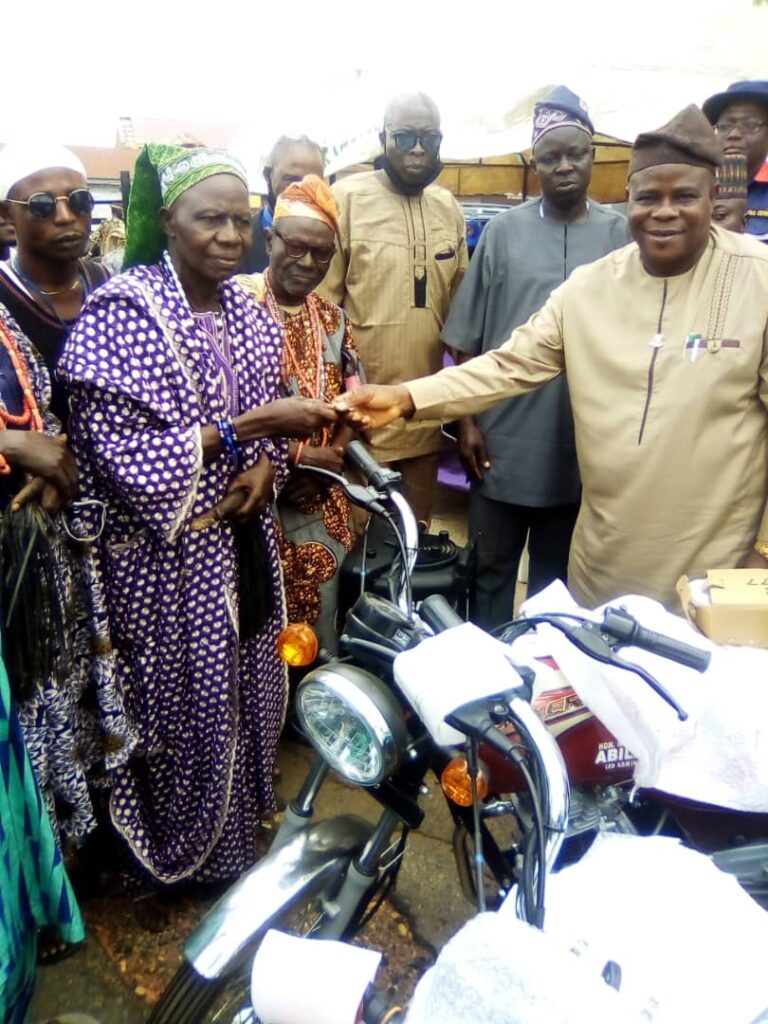 As part of the ongoing efforts to secure the lives and properties of the residents of Oyo State, the chairman of Iseyin local government, Mr Mufutau Osuolale Abilawon, on Friday, distributed 5 motorcycles to local hunters in the council.