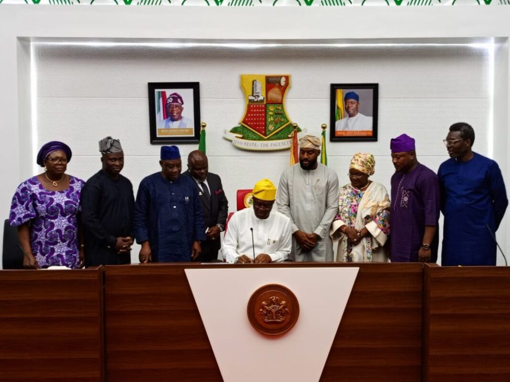 Oyo State Governor, Seyi Makinde, on Friday, signed the 2024 Appropriation Bill of four hundred and thirty-eight billion, four hundred and forty-seven million, eight hundred and seventy-eight thousand, five hundred forty-eight naira, thirty-nine kobo (N438,447,878,548.39) into law. Newsbreaknaija reports.