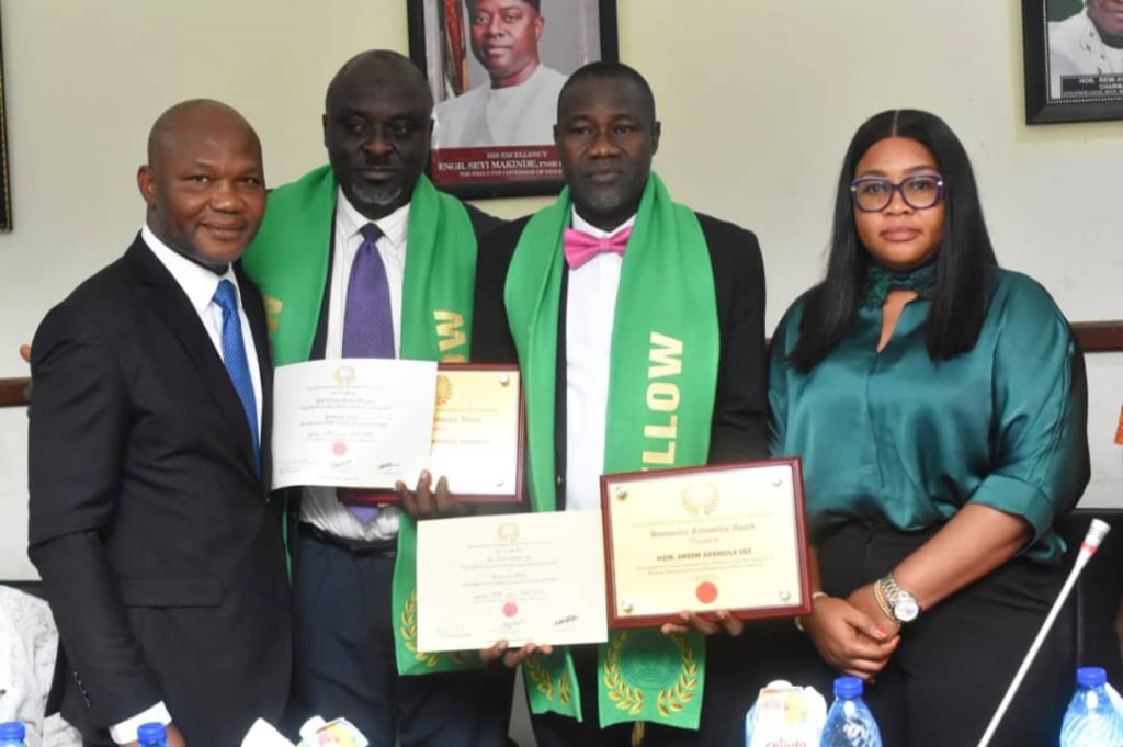 The Chairman and Permanent Secretary of the Oyo State Local Government Staff Pension Board , Hon Akeem Ademola Ige and Alhaji Lukman Akinola Muraina respectively have bagged Honorary fellows of the Certified Pension Institute of Nigeria ( CPIN).