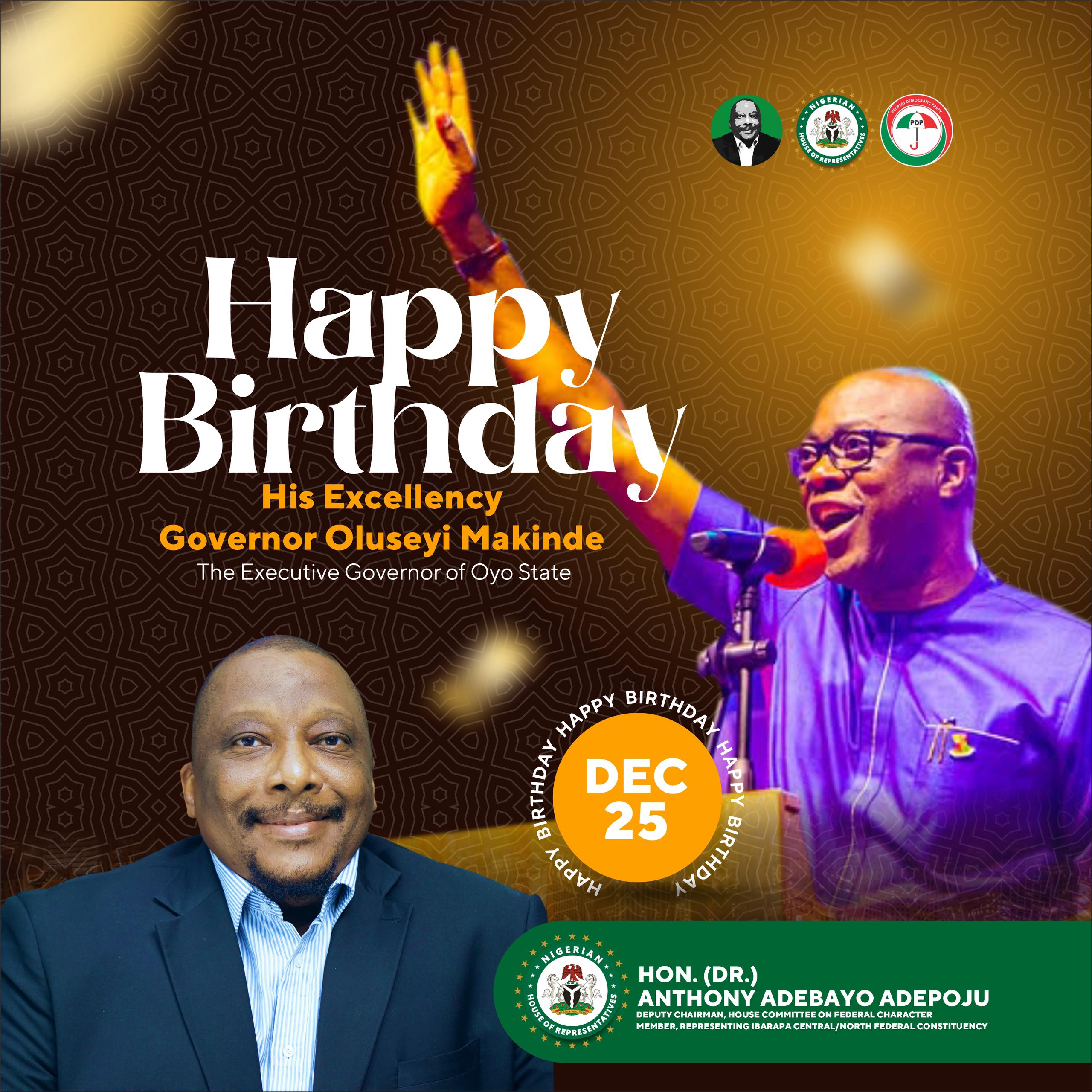 Member representing Ibarapa Central and Ibarapa North Federal Constituency, Hon. Dr. Anthony Adebayo Adepoju, has congratulated the Executive Governor of Oyo State, His Excellency, Engr Seyi Makinde, on his 58th birthday, describing him as a leader with uncommon and exemplary leadership qualities.