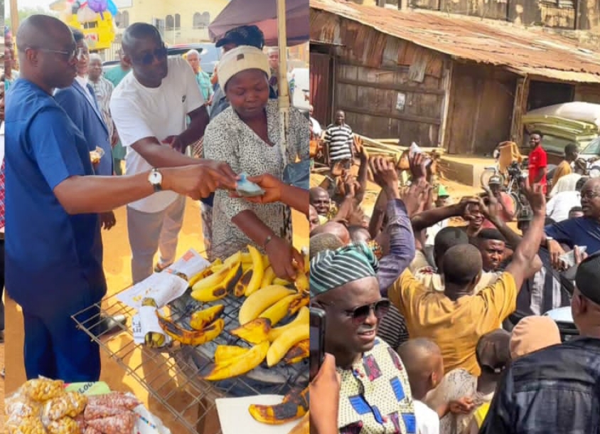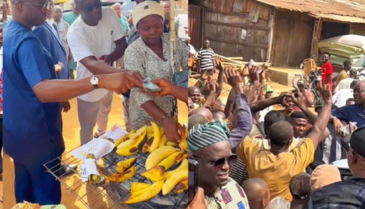 He gave a substantial sum of money to the plantain seller and another woman selling pepper, drawing admiration from residents who hailed his simplicity, inclusiveness, and grassroots appeal.