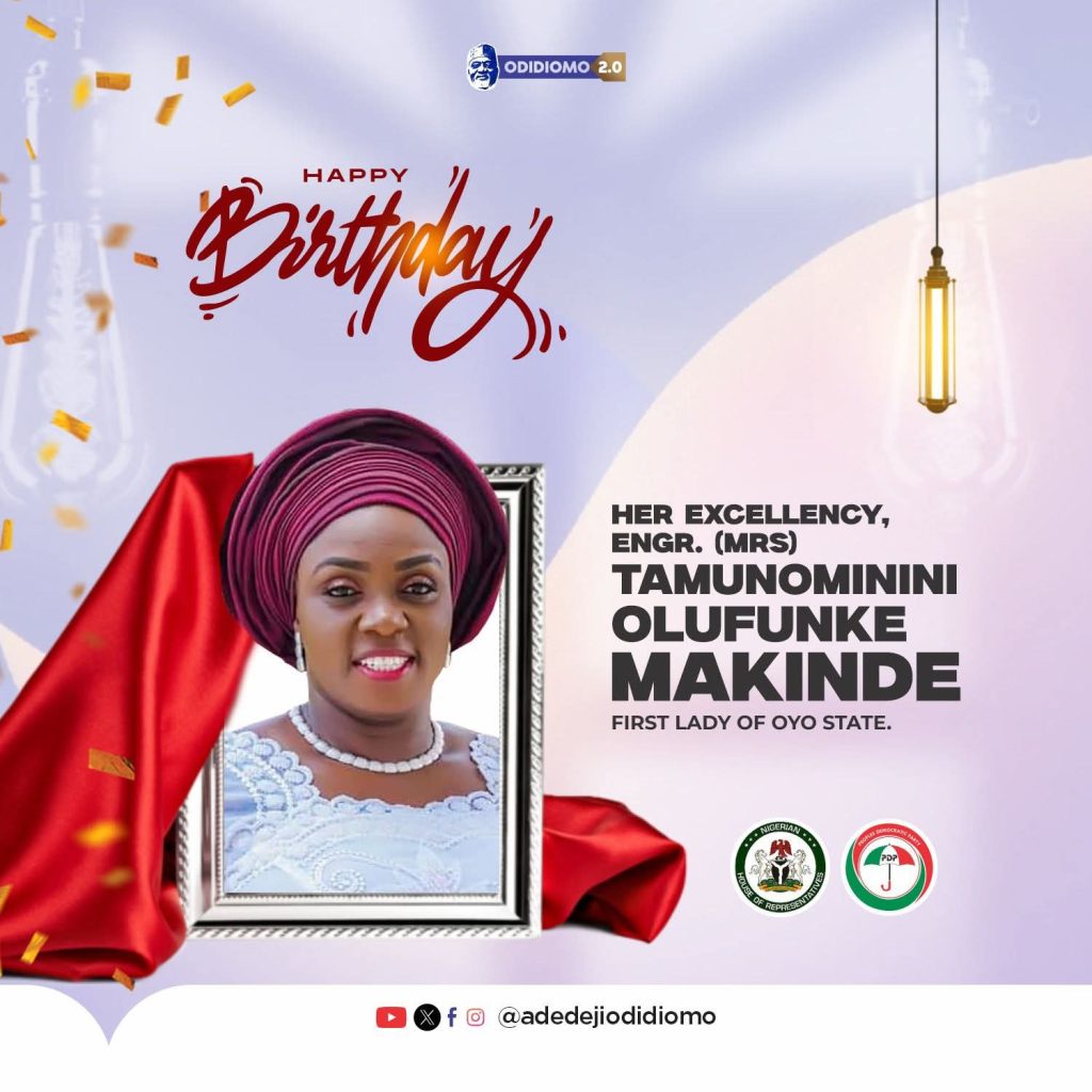 Hon. Dhikrullah Adedeji Olajide, widely known as Odidiomo and House of Representatives member, representing Ibadan Northwest/Southwest in the House of Representatives, has extended warm congratulations to Her Excellency Tamunominini Olufunke, the First Lady of Oyo State, on the occasion of her 50th birthday.
