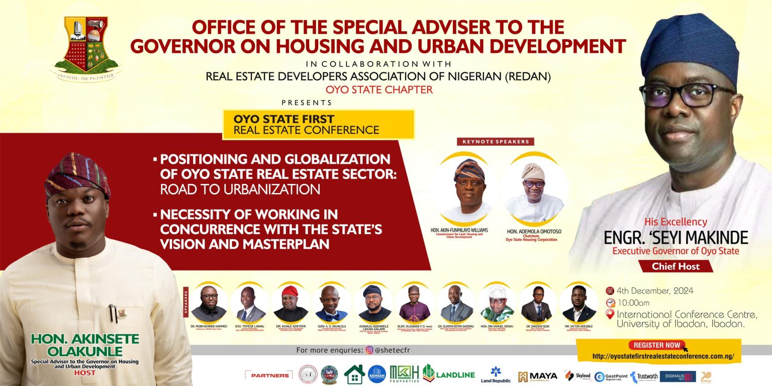 The Office of the Special Adviser to the Governor on Housing and Urban Development, in collaboration with the Real Estate Developers Association of Nigeria (REDAN), has announced the inaugural Oyo State Real Estate Conference.