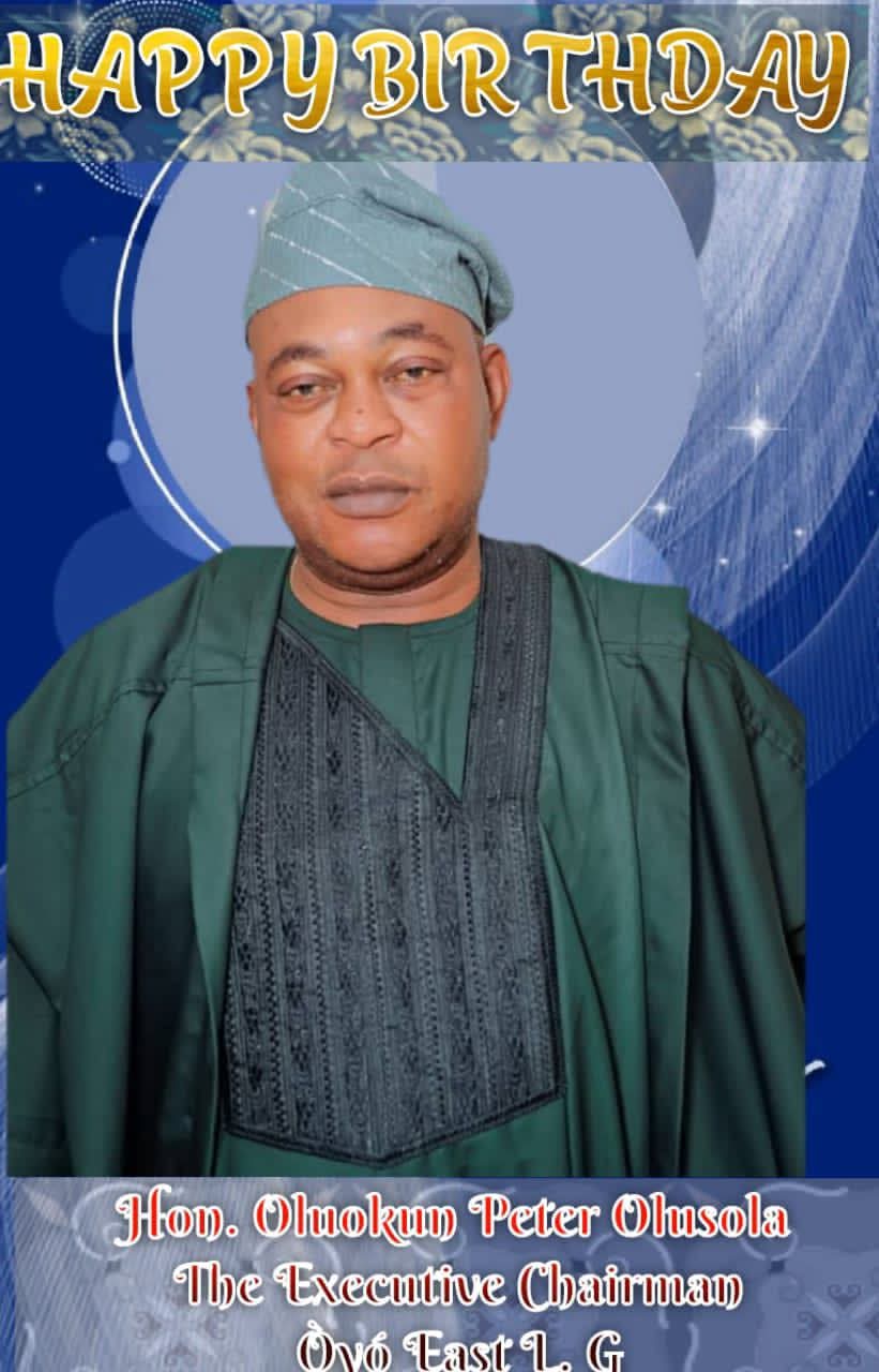 The atmosphere within the Oyo East Local Government was filled with joy and admiration as the management, staff, and political functionaries of the council extended their heartfelt congratulations to the Executive Chairman, Hon. Oluokun Peter Olusola, popularly known as Omi Anu, on the occasion of his 55th birthday on Friday, October 31, 2025.