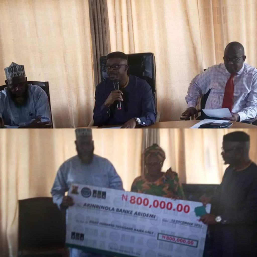 The symbolic presentation of cheques to the farmers was held at the Conference Room of the Ministry of Agric and Rural Development, State Secretariat, Agodi Ibadan.