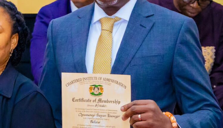 The Chief of Staff to the Governor of Oyo State, Otunba (Dr.) Segun Ogunwuyi, has been formally inducted as a Fellow of the Chartered Institute of Administration (CIA), a prestigious professional recognition reserved for distinguished leaders in public administration and governance.