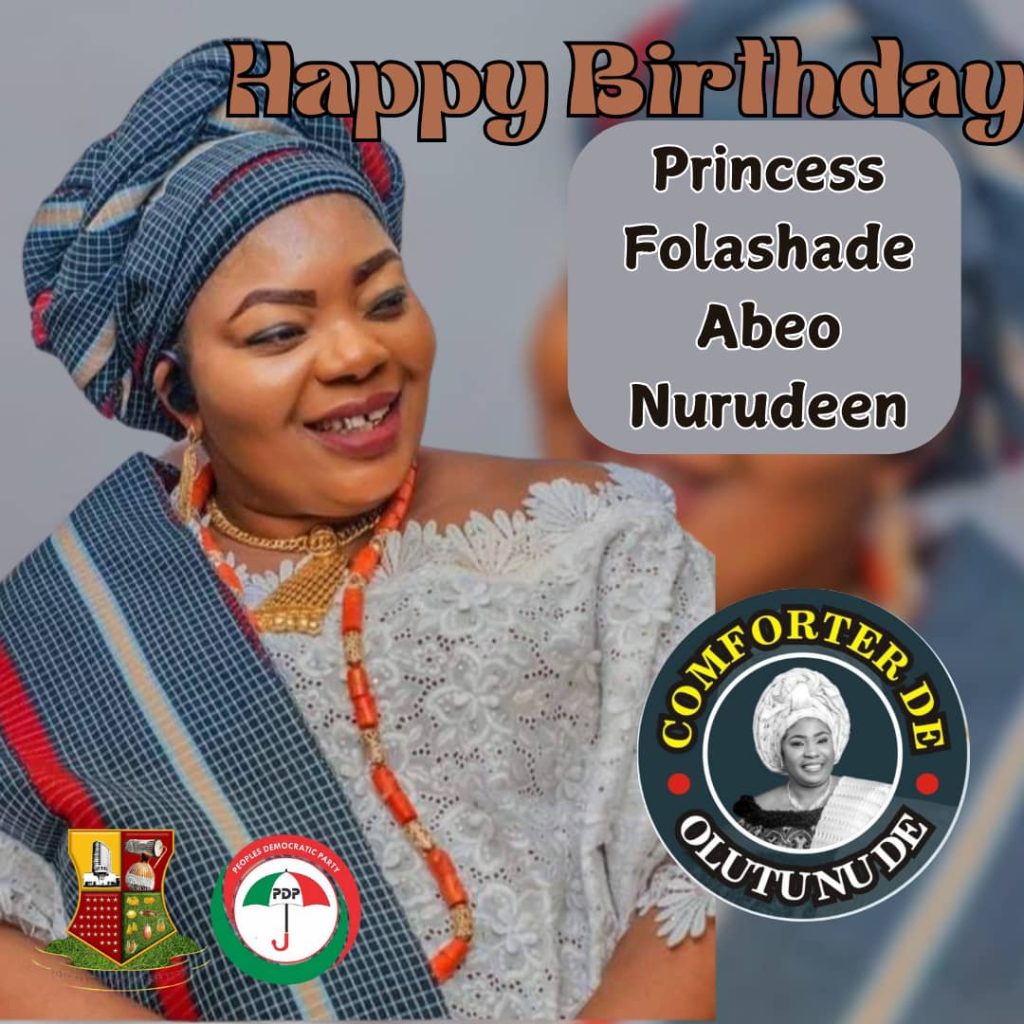 The Chairman of Oyo State House Committee on Women Affairs and Community Development, Hon. Olufunke Comforter Adeniyi-Olajide has felicitated Oyo Businesswoman and philanthropist, Princess Folashade Abeo Nurudeen on her birthday.