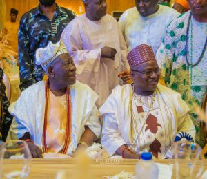 Olubadan of Ibadanland, His Imperial Majesty, Oba Saliu Adetunji Ajeoguguniso 1 and Ataoja of Osogbo, His Royal Majesty, Oba Jimoh Oyetunji were among the dignitaries that attended the wedding reception of Kazeem Bolarinwa.