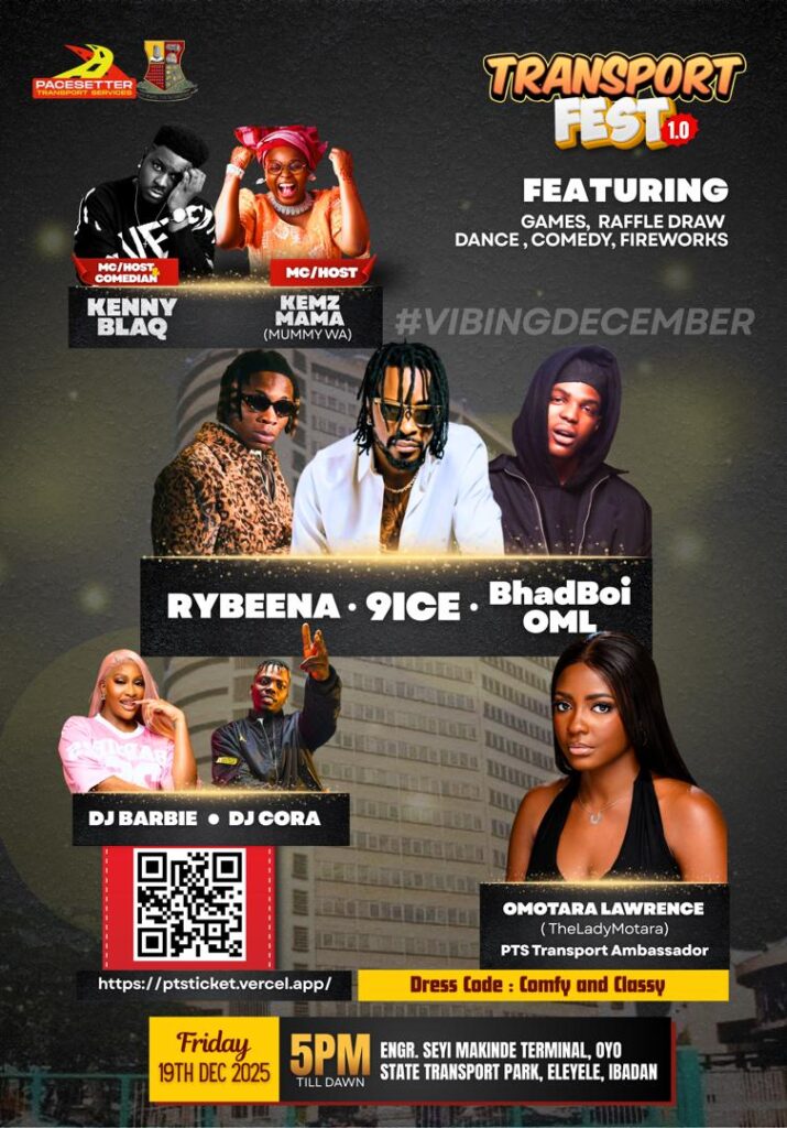 The Oyo State Pacesetter Transport Service (PTS), has announced plans to host a major end-of-year entertainment event tagged, “Transport Fest 1.0,” as part of activities marking Vibing December, aimed at providing leisure and community engagement for residents of the state.