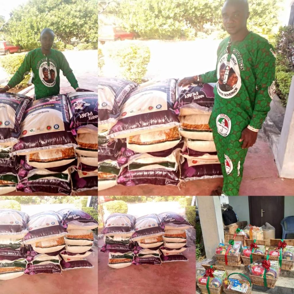 The Commissioner for Agriculture and Rural Development, Barrister Olasunkanmi Olaleye has doled out cash gifts and bags of rice to members of Peoples Democratic Party (PDP), leaders and residents of his local government.